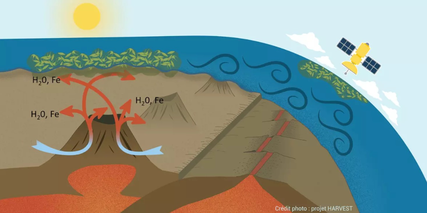 Le projet HARVEST (Hydrothermal iron from the earth’s interior as fertiliser of photosynthesis in the ocean), étudie comment le fer émis par les volcans sous-marins stimule la croissance du phytoplancton. Le fer est un élément nutritif essentiel à la vie marine - mais la contribution de ce fer hydrothermal à la productivité biologique reste encore peu connue. C'est surtout le cas pour le volcanisme peu profond dans les océans, susceptible d’influencer directement les eaux de surface. HARVEST vise à combler cette lacune en évaluant le rôle du fer issu de sources hydrothermales profondes et peu profondes dans la production primaire des zones océaniques limitées en fer, à travers une approche intégrée combinant observations de terrain et modélisation.