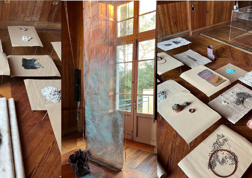 Sa participation à une campagne océanographique et l’accès à des échantillons scientifiques ont nourri l’œuvre ¿Dónde empieza el fin del mar ?, composée de traces et de matières issues des profondeurs océaniques. Cette création a été complétée, lors de l’exposition, par l’installation Alianzas, réalisée lors de sa précédente résidence (2023–2024).